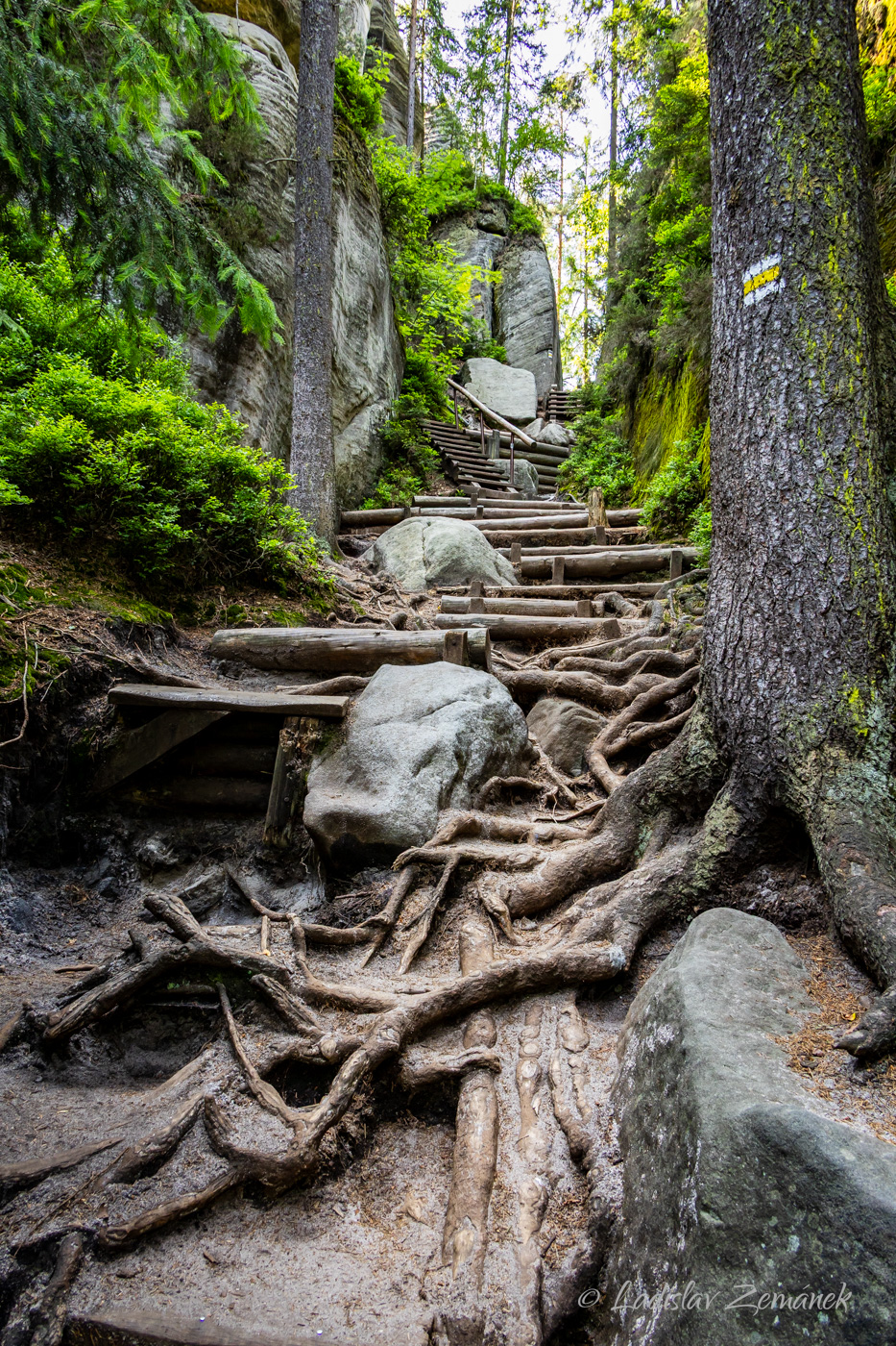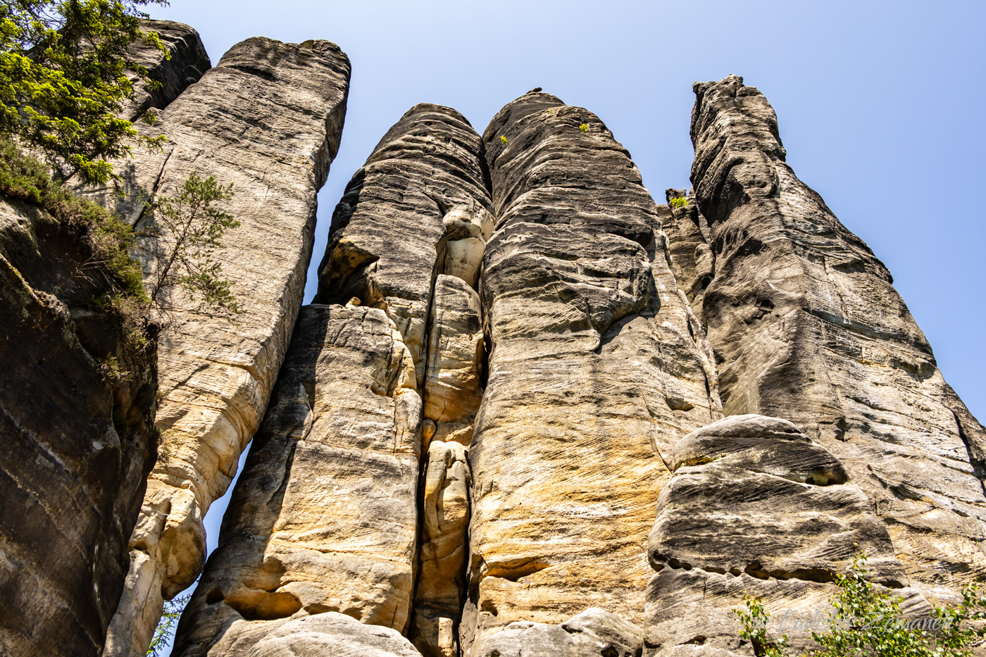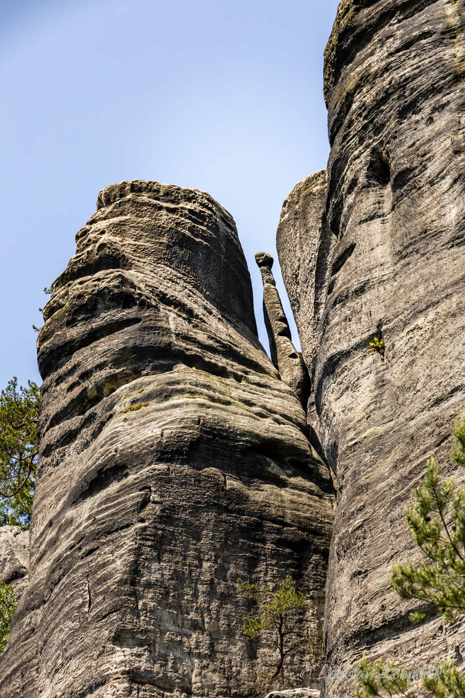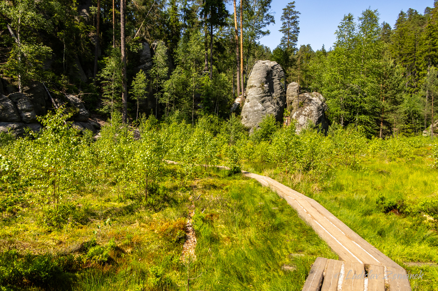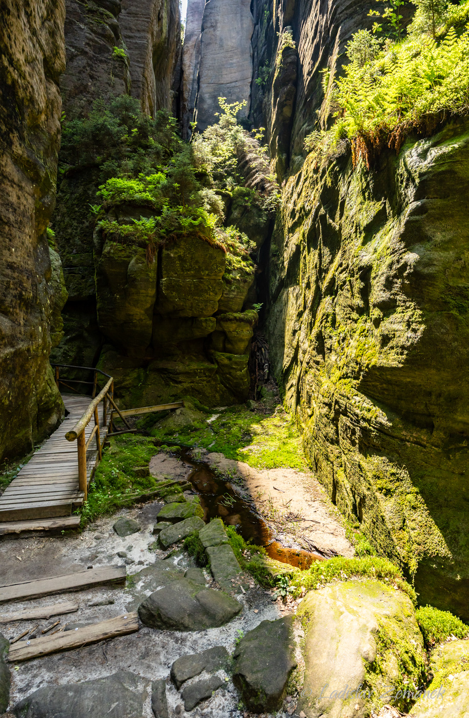 Pokud do skal vstoupíte u Adršpachu, tak vás po zaplacení přivítá azurová hladina zatopené bývalé pískovny. Můžete si toto jezírko obejít a pak pokračovat po zelené. Je to okruh, který se určitě vyplatí obejít celý, ale pak se musíte vrátit zpět ke žluté značce, abyste se dostali k Adršpašskému skalnímu jezírku, po kterém se můžete svézt na loďce. Za jezírkem projdete po žluté Vlčí roklí a ta vás přivede do Teplických skal. Zde je opět několik okruhů, které si podle libosti zkombinujete. Pokud byste chtěli všechno vidět za jeden den, tak máte co dělat 🙂 V galerii najdete i fotky z pozdějších návštěv, kdy jsme procházeli do skalního města od vlaku z Janovic u Trutnova.